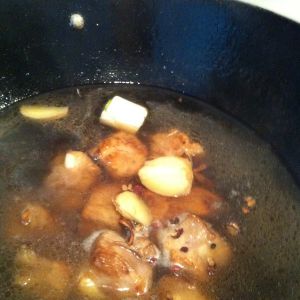 准备卤料:桂皮、八角、葱段、姜片、花椒粒