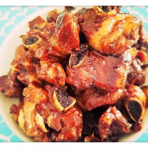 将配料和小排一起放在锅里煮,大火煮开后,调至小火煮,待水快收干时,调入湿淀粉收汁挂浆。