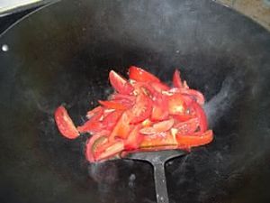 下西红柿炒,改小火整成汁,下盐,适当咸点。再把蒸草菇蒸出的水倒入西红柿里搅拌