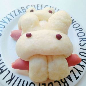 尾部从绕过宝宝肠,从洞中穿过,最后用红豆点缀眼睛