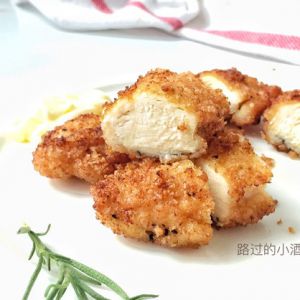 最后,把沾有面包糠的鸡肉放到油锅里面进行炸制,期间始终保持小火,不停的翻动,直到炸至两面金黄色即可出锅。