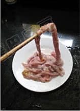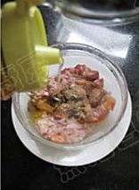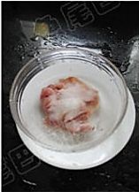 用水慢慢把肠壁上的污垢冲洗干净后加入盐和生粉,反复地用清水冲洗几遍。