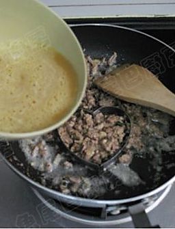 爆炒至熟后,加入打散的蛋液,中小火煎至两面金黄即可。