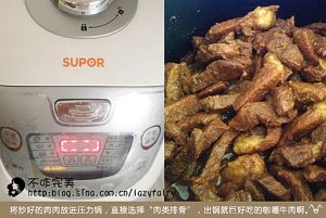 炒好的肉肉放进电压力锅,直接选择“肉类排骨”按钮,如果不做肉干,这步可以切一颗洋葱加进去,出锅就是巨好吃的咖喱牛肉了。