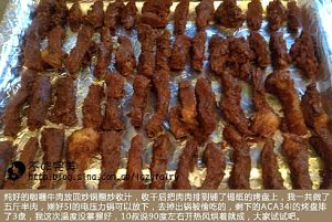 炖好的牛肉放回炒锅翻炒收汁,这步是味道浓郁的关键,但是如果实在太懒,或者炖煮完没有什么汤汁也可以略过哈。收干汁的牛肉,一块块排列在垫好锡纸的烤盘上,我一共做了五斤半牛肉,刚好5L的电压力锅可以放下。去掉出锅被偷吃的,剩下的ACA34升烤箱正好烤了3盘。我这次温度没掌握好,10叔说90度开热风烘着就成。