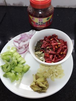 洋葱切块,大葱切小段,姜切丝,蒜切末,干辣椒切小段