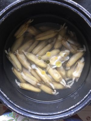 蛏子买回来后,要放入清水中,加点盐,几滴油养半天,让它吐沙干净