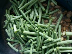 豆角倒进去翻炒