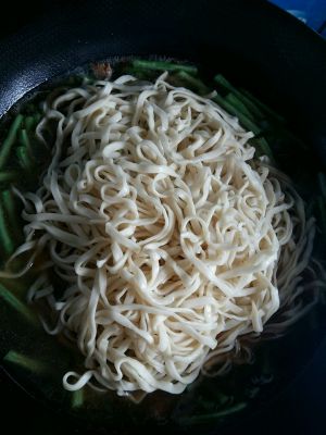 面条放进去。不搅拌就这样盖上锅盖。大火煮开。