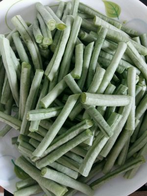 豆角切成5㎝的长条。