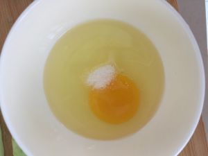 鸡蛋加适量盐打散、热锅加油摊成鸡蛋饼