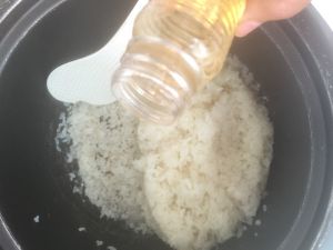 蒸好的米饭稍微晾会、再加入寿司醋搅拌均匀