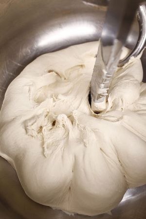将所有材料称好倒入搅拌机中搅拌至面团光滑有弹性能拉开面膜即可。