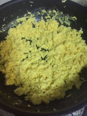 油锅烧热炒鸡蛋,不要太久,稍微成形就可以