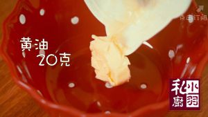 ▲先来拌蛋奶酥馅,把黄油提前从冰箱里取出软化,如果来不及可以放在碗里隔水加热,或者放微波炉叮一下。总之得是软软的才好用,变成液体也没关系,可以照常用。