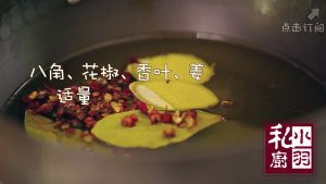 ▲看到放进去的香料和姜片变色了,就可以捞出来了。