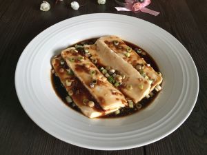 将调好的汁淋在豆腐上,清淡爽口味道好极了。