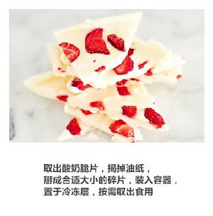 取出酸奶脆片,揭掉油纸,掰成合适大小的碎片,装入容器,置于冷冻层,按需取出食用