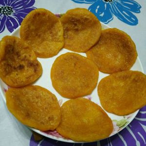 平底锅放油烧热,把南瓜饼排开放好,小火煎至两面金黄就可以了。