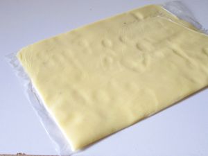 将面团放入保鲜袋,我直接将它隔着保鲜袋擀成2、3毫米厚的片状后放入冰箱冷藏备用