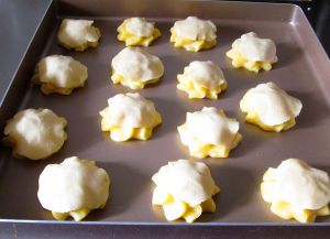 覆盖在每个泡芙面团上。