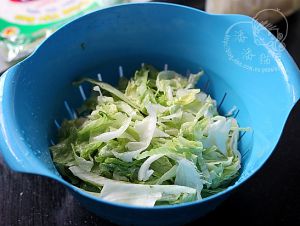 生菜洗净后切成丝,粗点没事。豆芽烫熟备用。