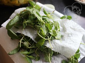 薄荷洗净后用厨房纸吸去水分,用时只取叶子,梗不要。