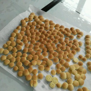 把3用手捏成面团后搓成条,然后用小刀切成小粒,揉圆。