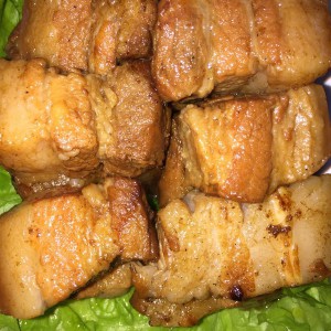 没有照片,哈哈!选肉一定要五花三层,要硬五花!切成自己喜欢的大小就可以了,我切的比较大块儿!冷水下锅,直到水开了之后把肉捞出来,控干水份,备用。