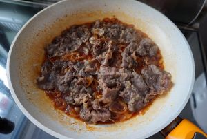待汤汁微微收浓,加入已去除血沫的肥牛片,继续煮5分钟。