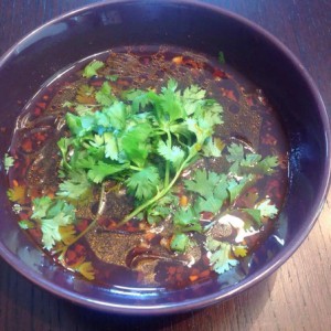 加入粉丝煮至粉丝变透明,撒上香菜即可!喜欢吃鱼丸的还可以加鱼丸哦!