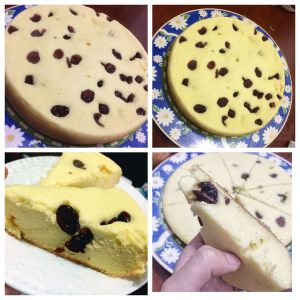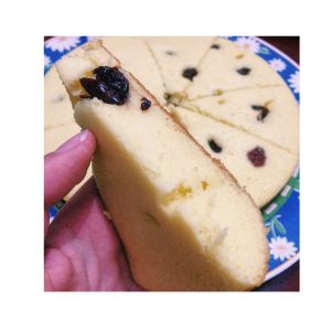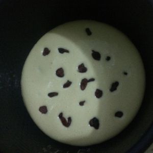 蛋黄蛋液一起搅拌好前就可以吧电饭煲预热,按快煮键(智能电饭煲,不会粘锅,我家是美的智能电饭煲,超级好用)电饭煲热了以后,放入黄油融化,用涮子涮几下,边上也涮。在倒入均匀,在适当放入蔓越莓(葡萄干,熟的红豆,坚果,花生,蓝莓干等等)