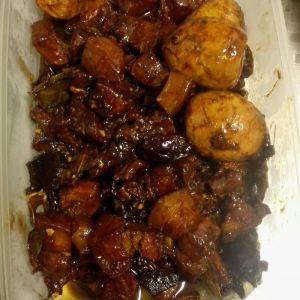放入老抽,放水稍盖过肉,放入红枣,开大火炖