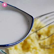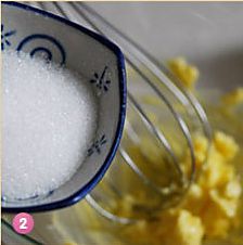 用蛋抽把软化的黄油搅打均匀。加入白砂糖继续搅打匀。