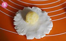 揉好的面团,平均分成10份。椰蓉陷也同样分成10份。取一份面团,包入馅料,慢慢收口。