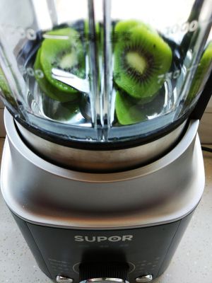 酸奶凝固后,用破壁机将去皮的猕猴桃打成汁