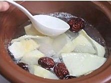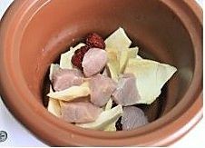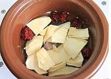 把瘦肉,切下来的榴莲壳 红枣一起放入砂锅中,