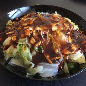 锅内放少许油,将之前准备好的姜蒜、酱油、蚝油、糖一起倒入,中小火,将准备好的少许淀粉倒入收紧,之后均匀的淋到菜上就可以了。