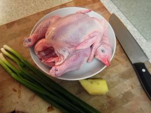 嫩鸡,洗净沥干水分。这里花花用的是童子鸡,比较嫩。