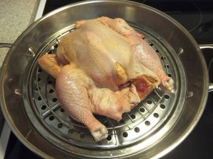 整鸡蒸25分钟(童子鸡可以20分钟),半鸡或者鸡腿,蒸15分钟。时间到后,不要开盖,关火闷15分钟。