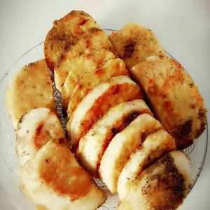 馒头切片 打好鸡蛋清 放入一点盐 让切好的馒头片裹上鸡蛋清