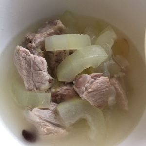 90分钟后放入冬瓜,盐,水开后转小火,炖20分钟。