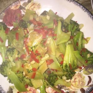 倒入酱油,盐,继续翻炒至西蓝花熟透