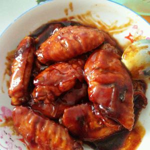 锅里放油,把腌好的鸡翅放里面煎,煎到两面都有点焦的样子