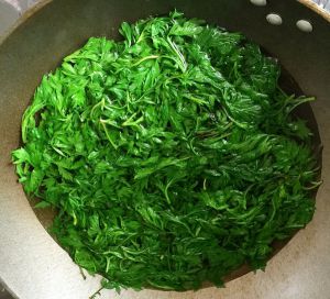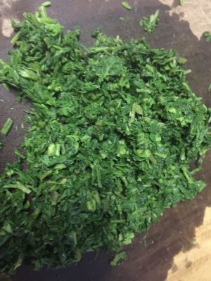 洗干净后放入开水锅中烫一下,捞出来挤出里面的水份。