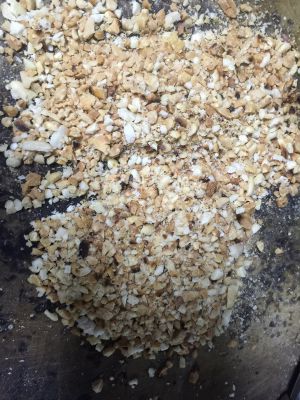 花生仁炒香后用菜刀压碎。