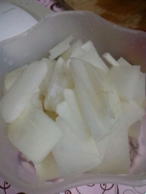 萝卜切好后放盐脱水,脱水就是等萝卜的水分出来。我问这个问题的时候还被嘲笑了哈哈