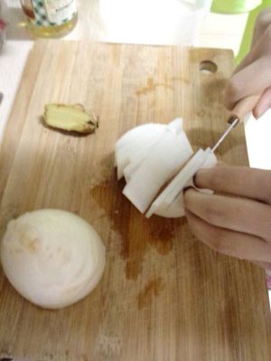 白萝卜切片,稍微薄一点,比较好入味。然后生姜切丝
