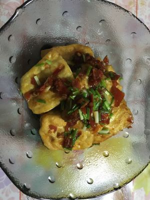 洒上葱花,儿子回家偷吃了一块,催我拍照。急着开饭。