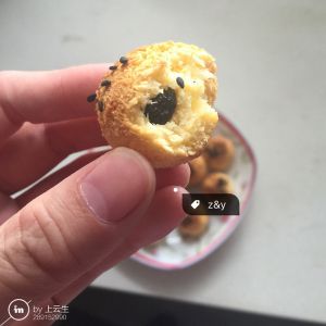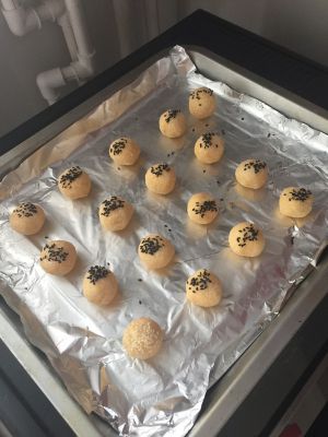 12g左右一个,我在里面加了一粒葡萄干~表面粘一些芝麻即可~